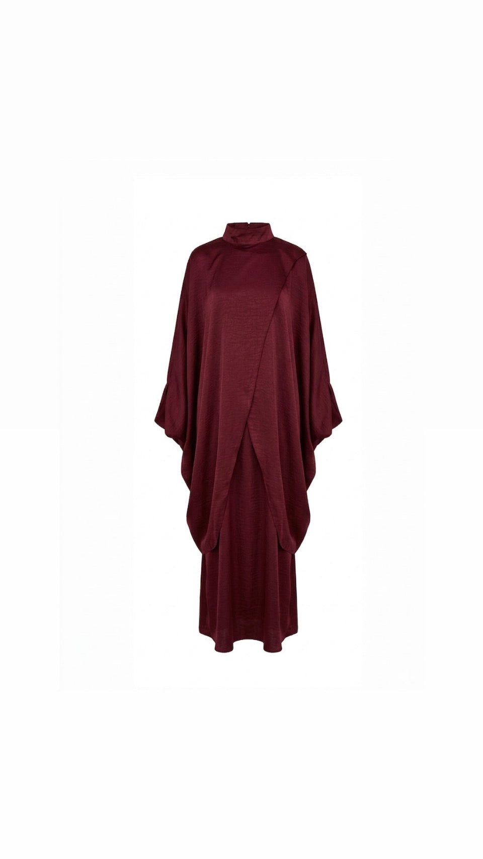 Quick View Limited color - Satijnen Hooggesloten Maxi-Jurk - burgundy 92566