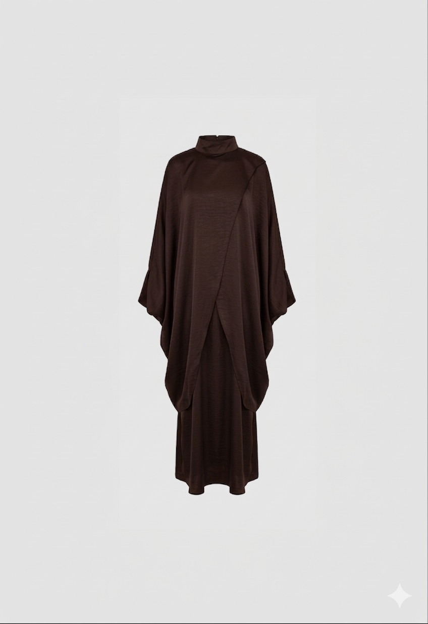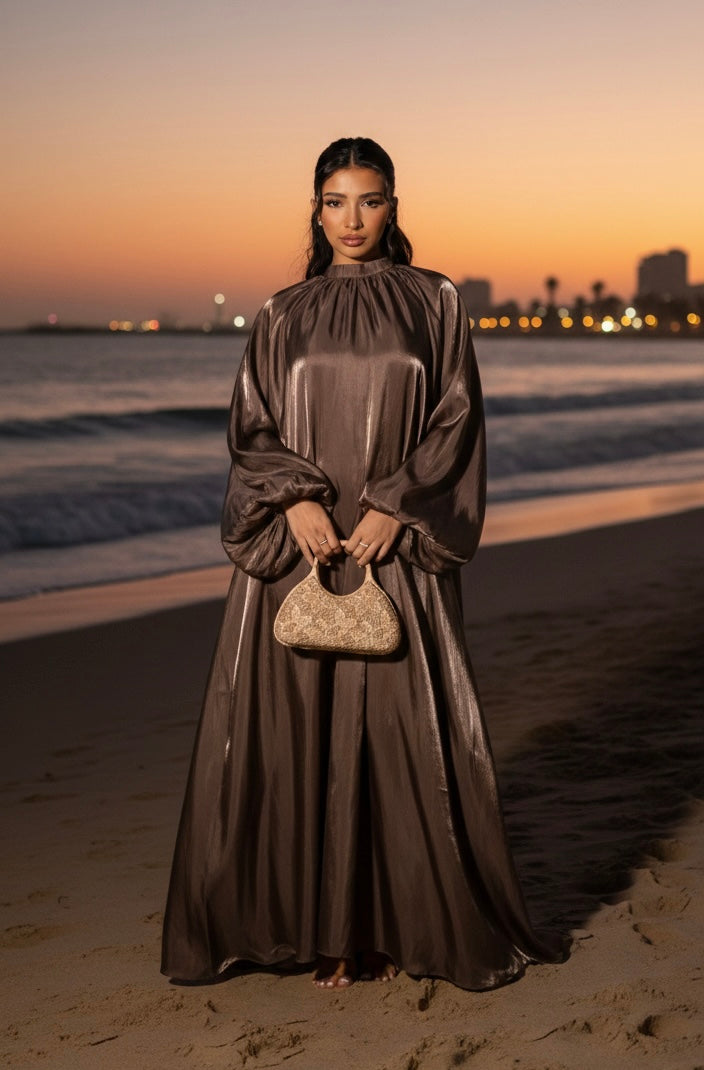 Satijnen jurk Hooggesloten Maxi-Jurk - bruin 92566