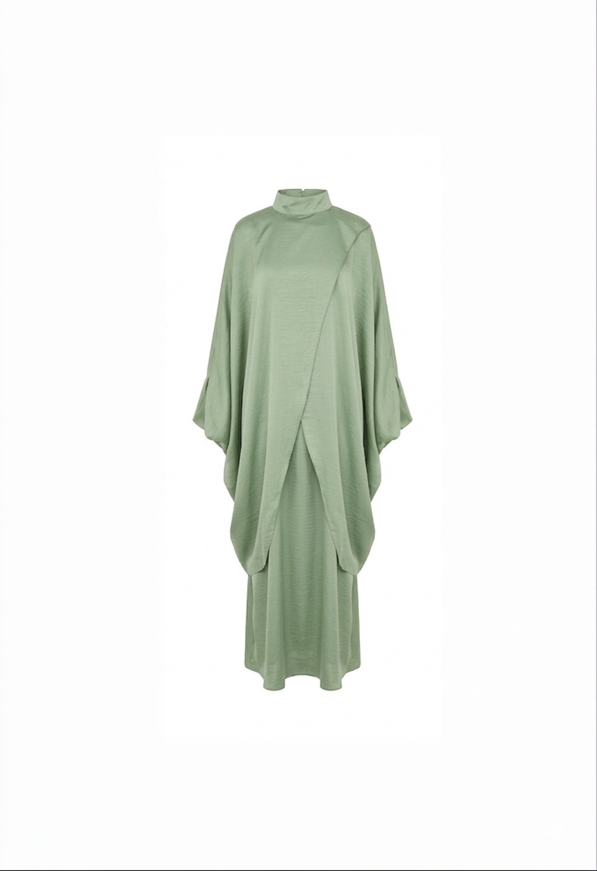 Satijnen Hooggesloten Maxi-Jurk - groen 92566