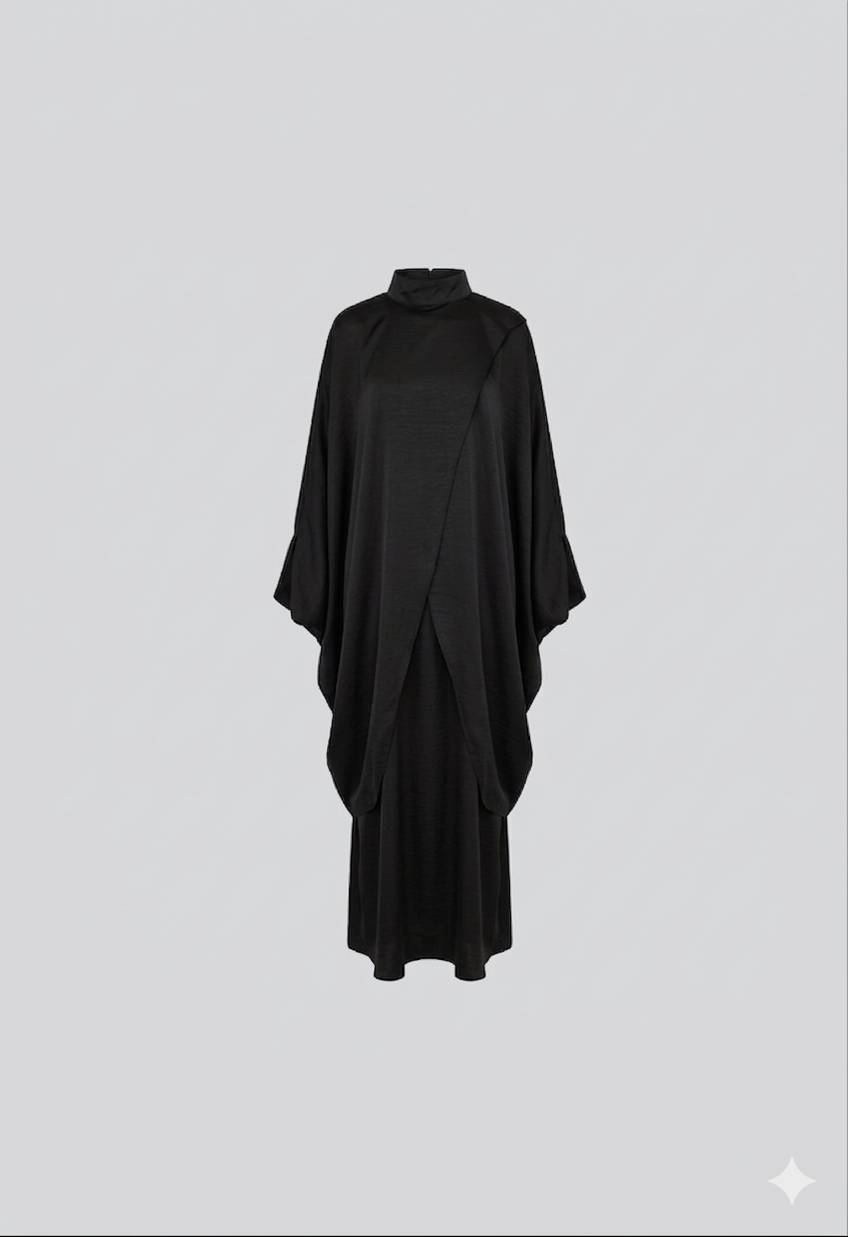 Satijnen Hooggesloten Maxi-Jurk - zwart 92566