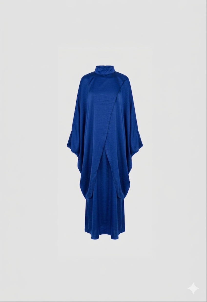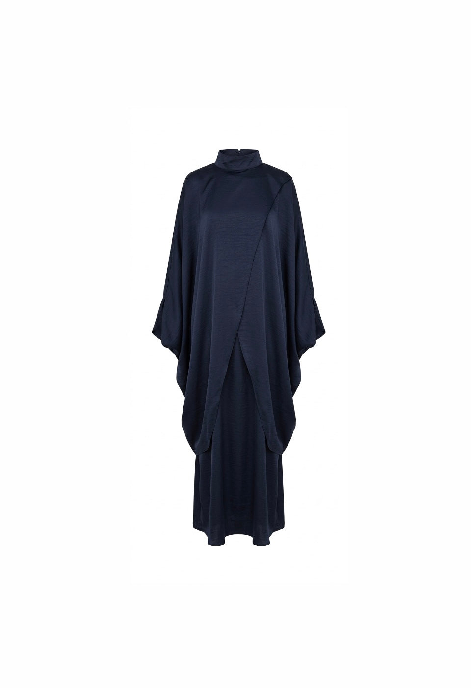 Satijnen Hooggesloten Maxi-Jurk - navy 92566