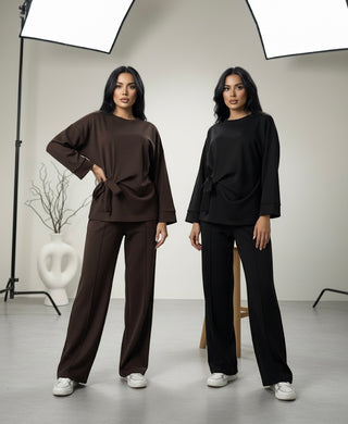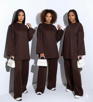 Modest comfy oversized sweater with wide pants - dark brown 6033