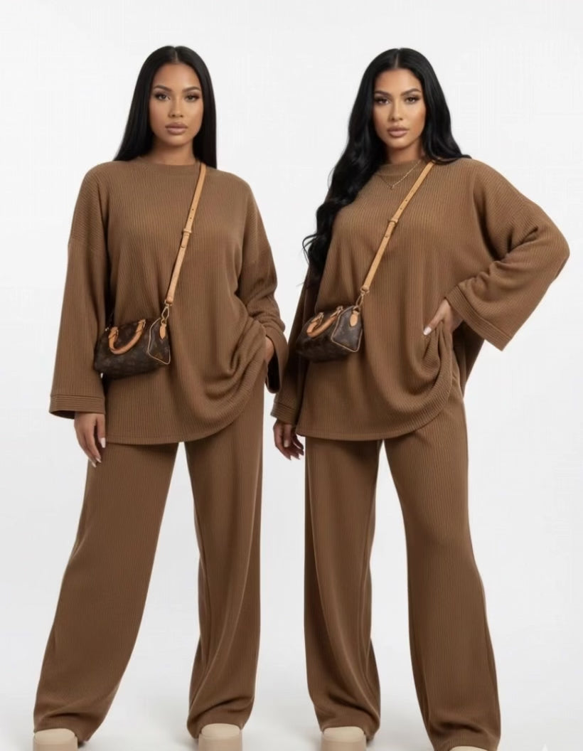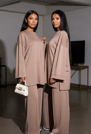 MODEST COMFY OVERSIZED SWEATER WITH WIDE PANTS - TAUPE 6033 PRE ORDER