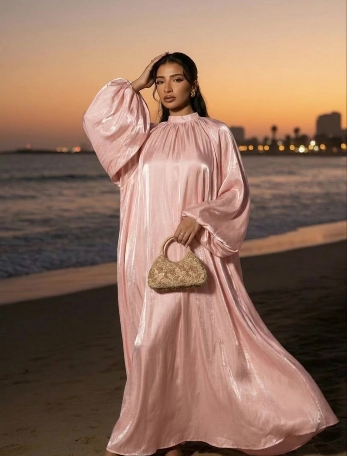 Satijnen Hooggesloten Maxi-Jurk - baby pink 92566