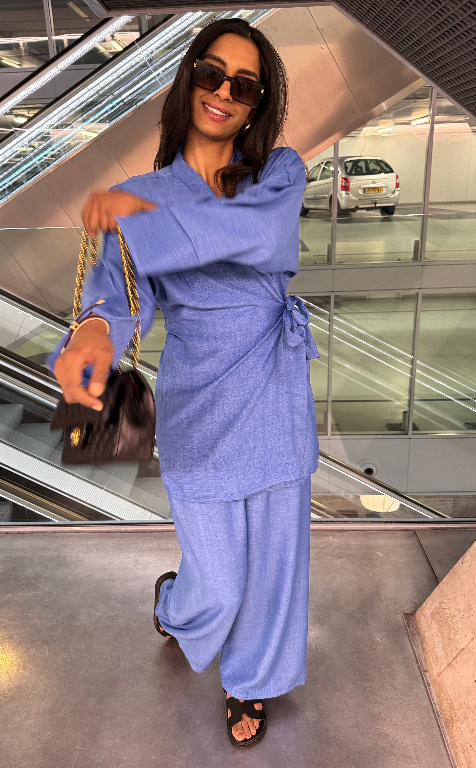 KIMONO SET MET WIJDE BROEK BLAUW (S020)
