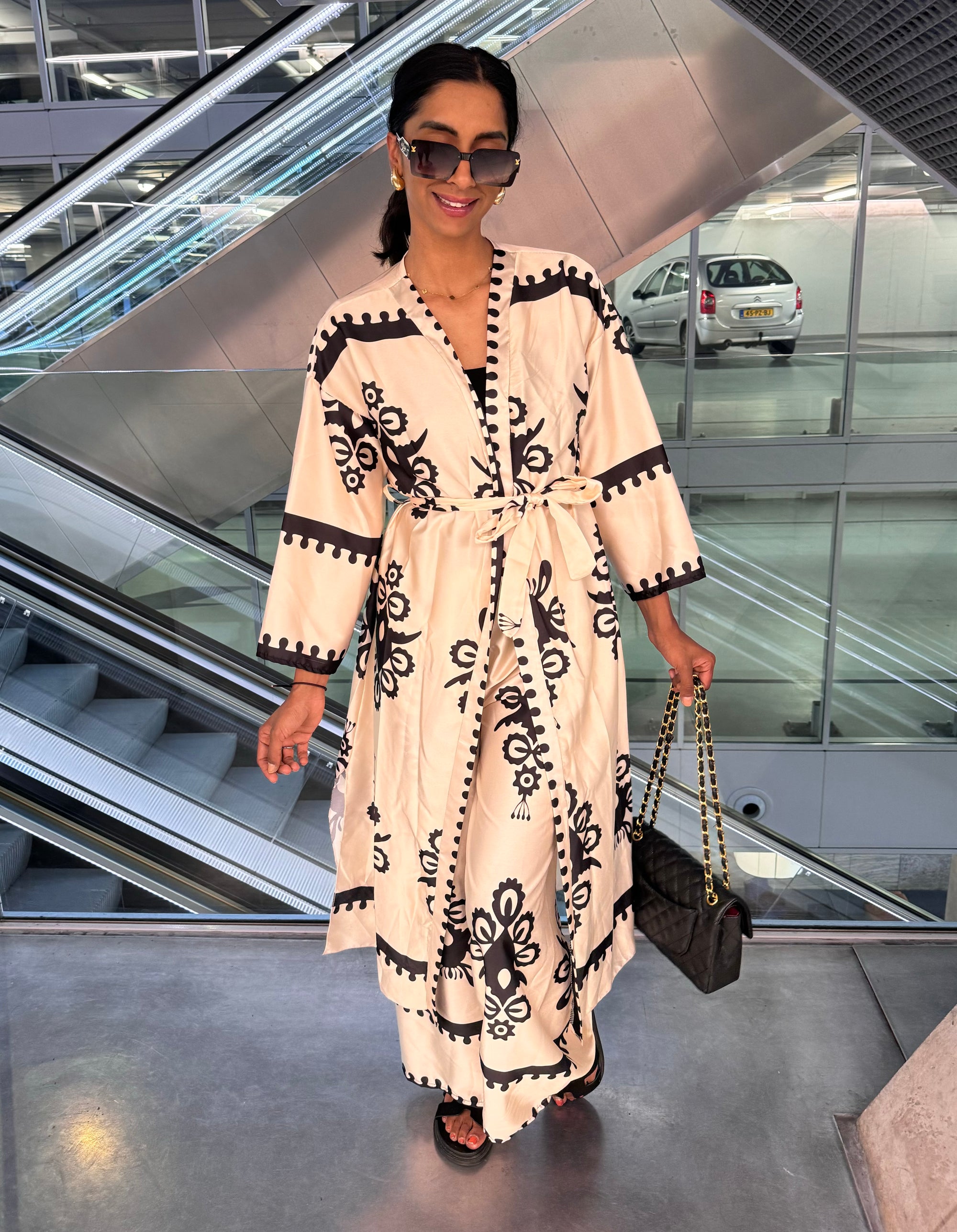 LANGE KIMONO MET WIJDE BROEK PRINT