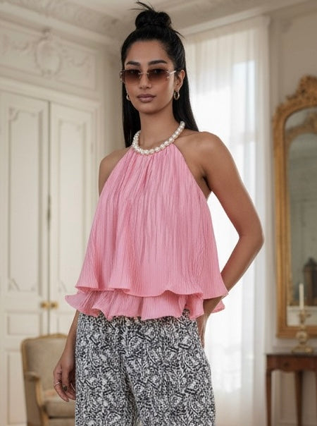 Parels top ruches roze