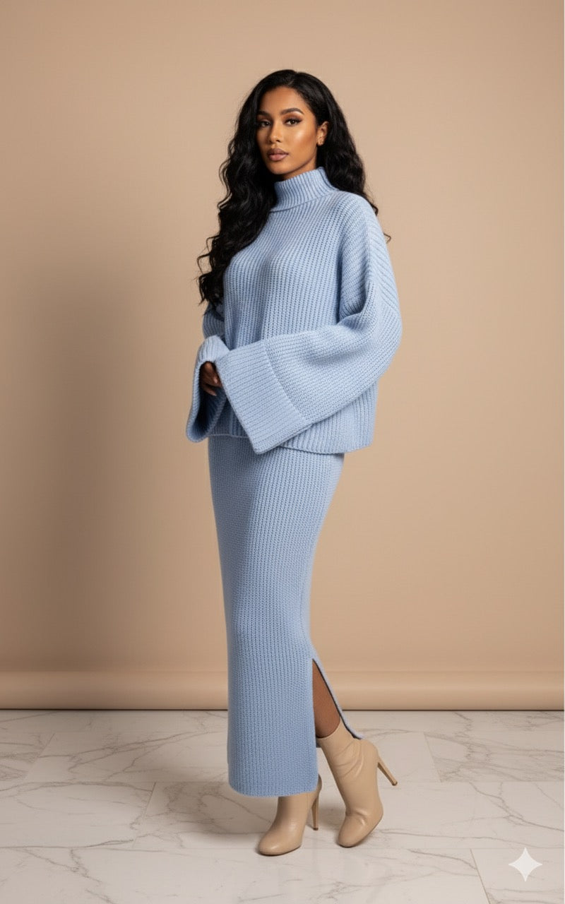 DINA TWEEDELIG GEBREIDEN PAK ZWART