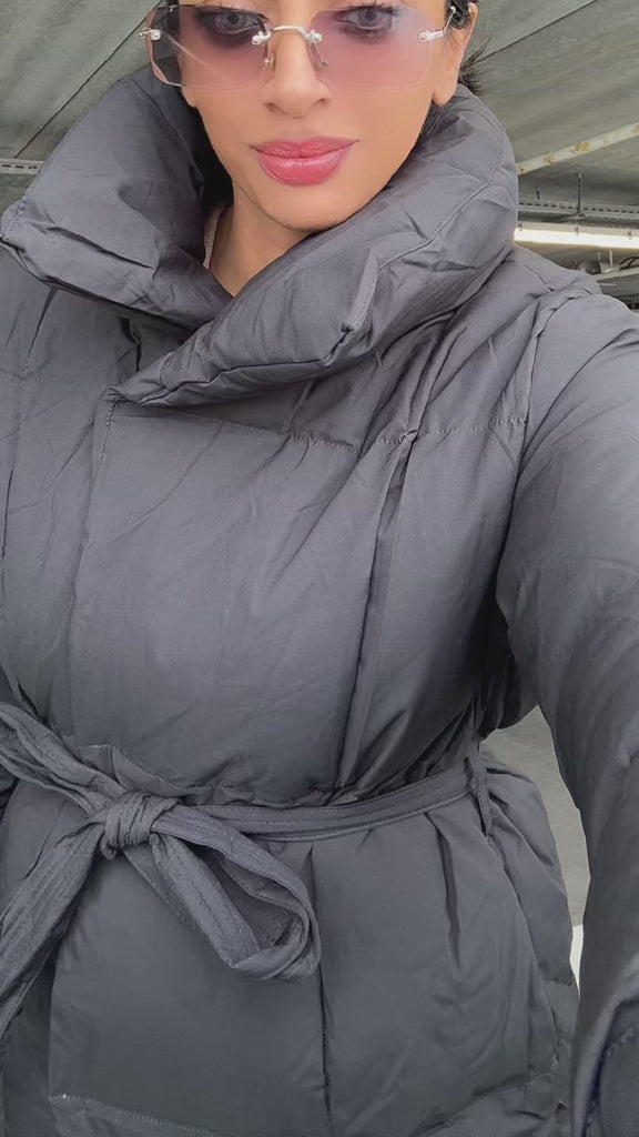 De puffer jas is een gladden geweven stof. Gewatteerd voor warmte.