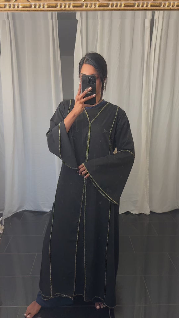 عباية قطعتين باللون الأسود والذهبي