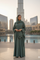Dubai abaya donker groen met zwarte steentjes - 9021