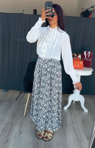 Rok zwart met witte print van viscose