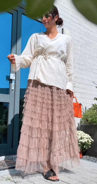 Rok met plooien camel