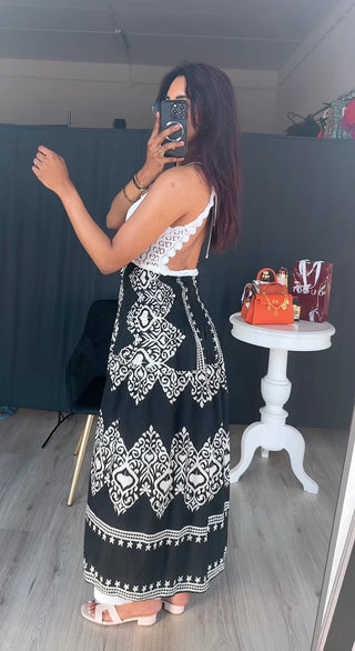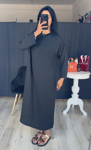 Ribbel lange jurk zwart - zomer 2025