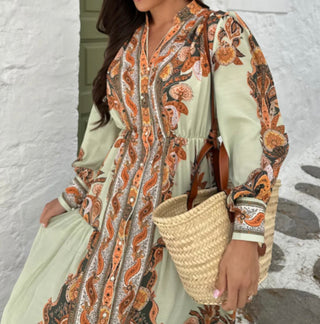 ROBE LORIA BROWN GREEN DRESS PRE ORDER