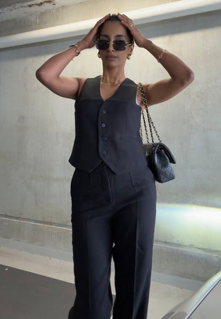 TOP TRICOT VEST MET KNOOPSLUITING