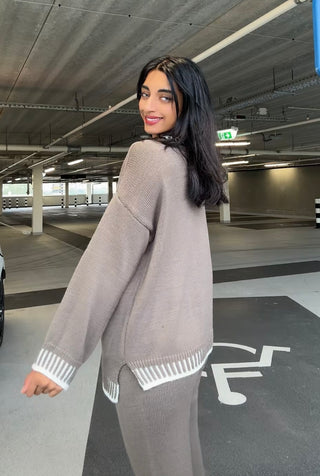 TAUPE PAK MET WITTE STREPEN