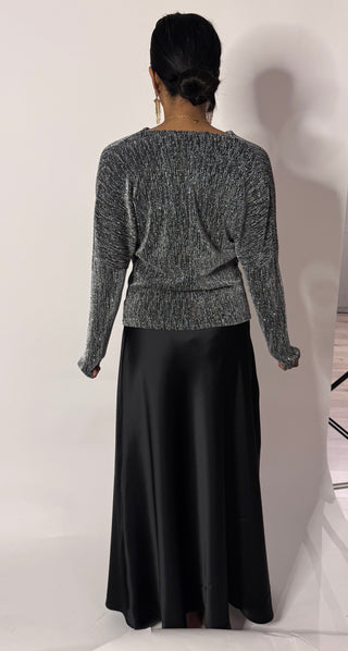 Tweedelig set met crop blouse en midi rok - zilveren knopen