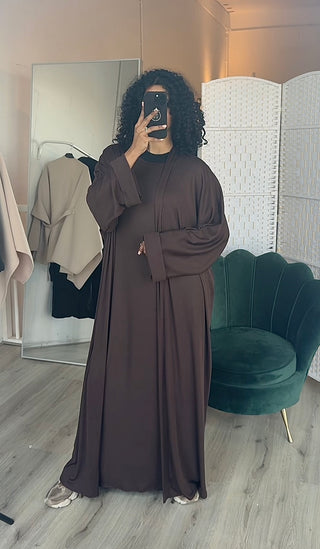 Tweedelig kimono met jurk donker bruin