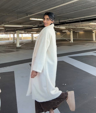 Teddy manteljas met gouden knoop - ecru