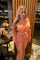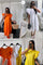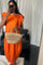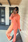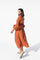 ZOMER ORANJE KATOENEN - MIDI JURK MET RUCHES DETAILS