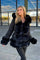 Zwarte winterjas met riem en bont