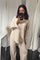 Comfy zipper set modest sweater with oversized pants - beige 6010