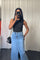 CRÊPE KORTE MOUWEN TWEEDELIG SET BLAUW
