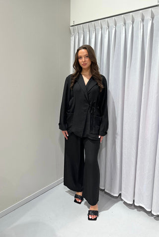 KIMONO SET MET WIJDE BROEK ZWART (S020)