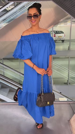 LORIA WIJDE JURK PUFF MOUWEN BLAUW