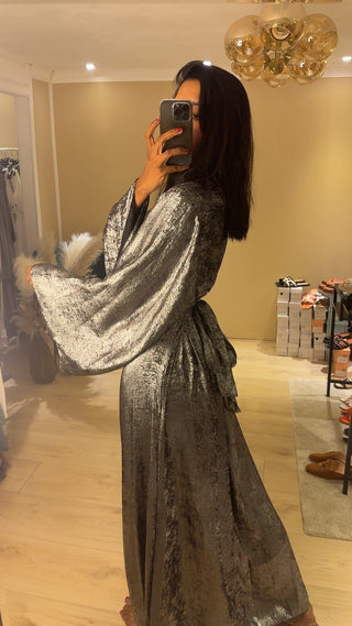 METALLIC GRIJS WIJDE JURK
