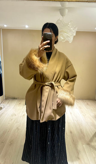 Manteljas met bont aan mouwen - beige