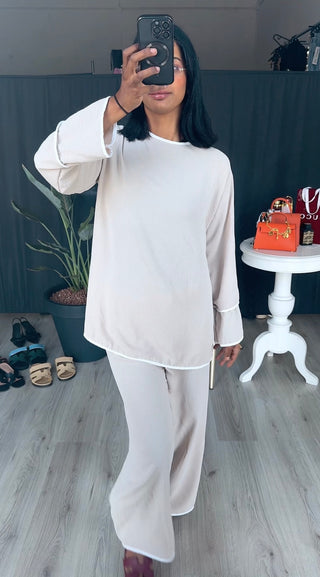 Modest - zomer oversized bloek met wijde broek set licht beige
