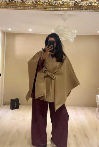 Manteljas met strik beige