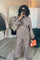 Overslag kimono met wijde broek taupe