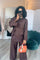 Overslag kimono met broek donker bruin