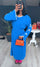 Katoenen jurk met strikjes en band kobalt blauw - ITALY100