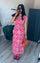 Rekbare lange jurk met printjes roze wit