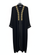 Abaya schikt over druk knopen. Zwart met gouden details aan de voorkant.