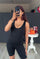 Jumpsuit rekt goed mee. Materiaal van polyster met een tint scrunch.